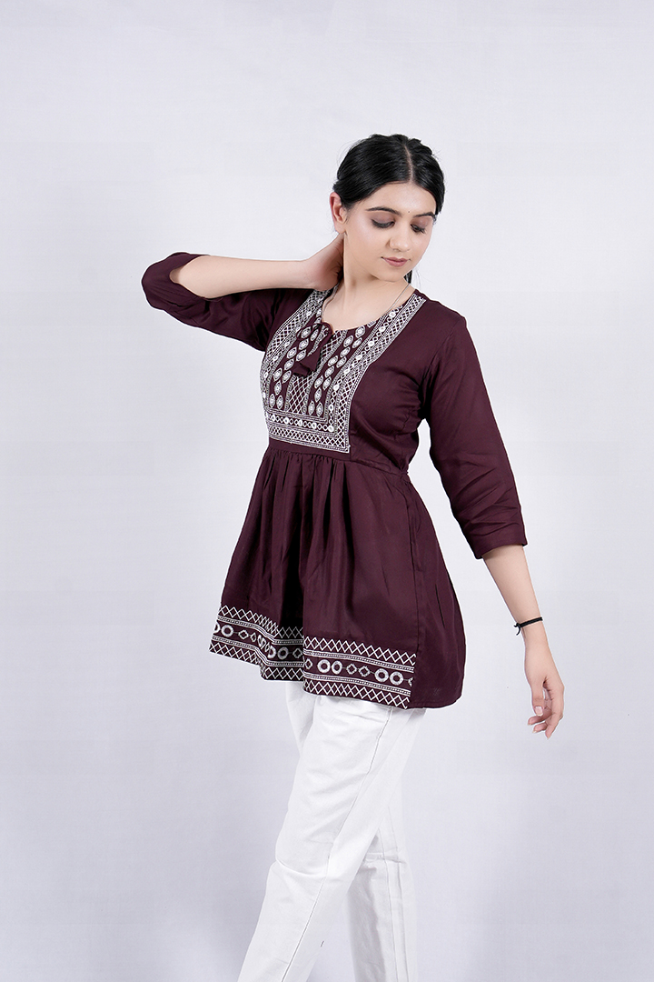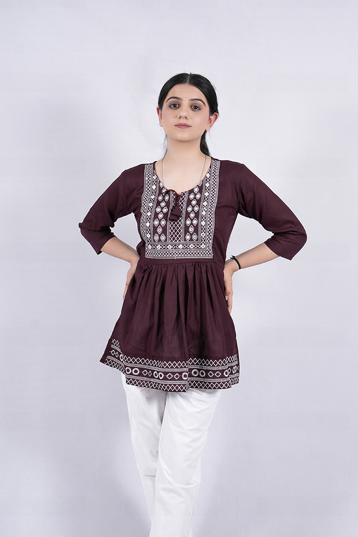 21 reviews for Chikankari Embroidery Short Kurti with Tassels (Wine)