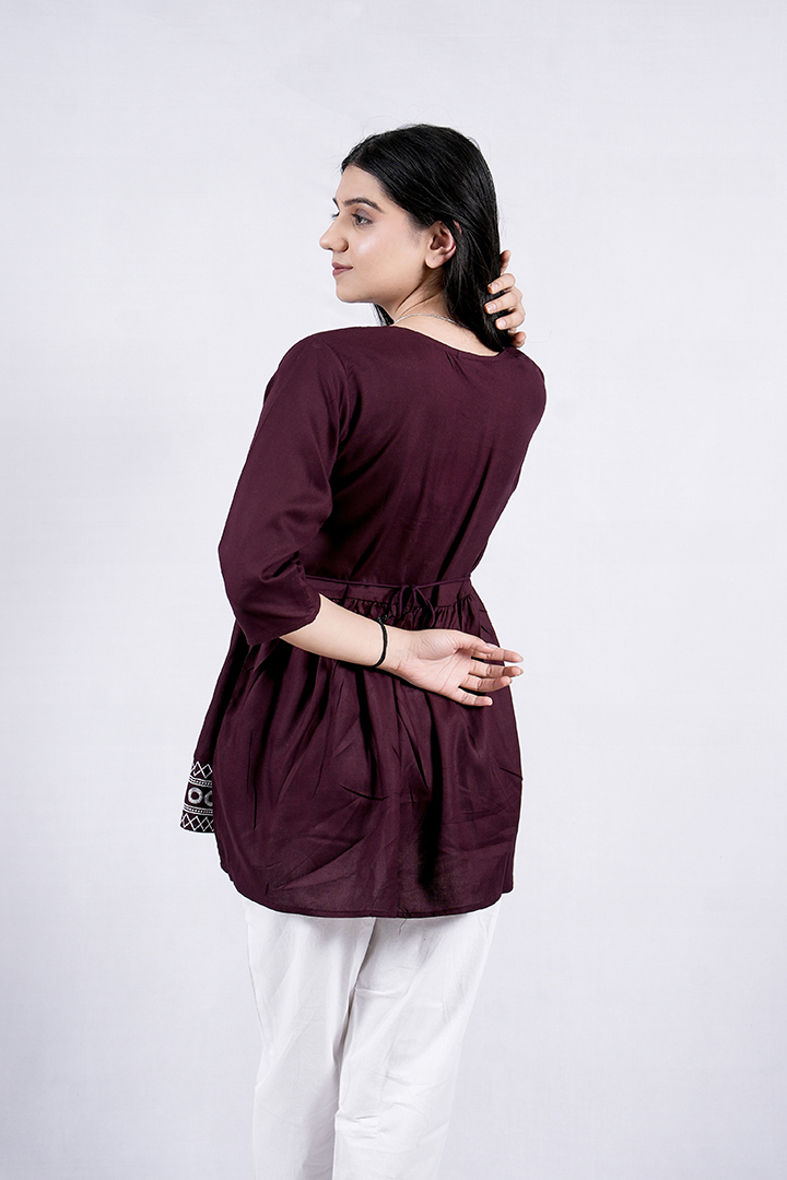 Chikankari Embroidery Short Kurti with Tassels (Wine)