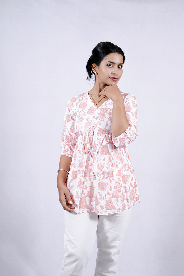 10 reviews for Floral Printed Blend Flared Short Kurti (Sea Pink)